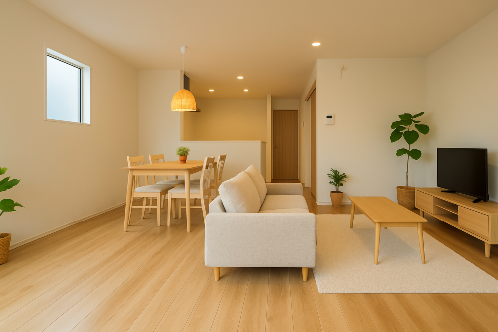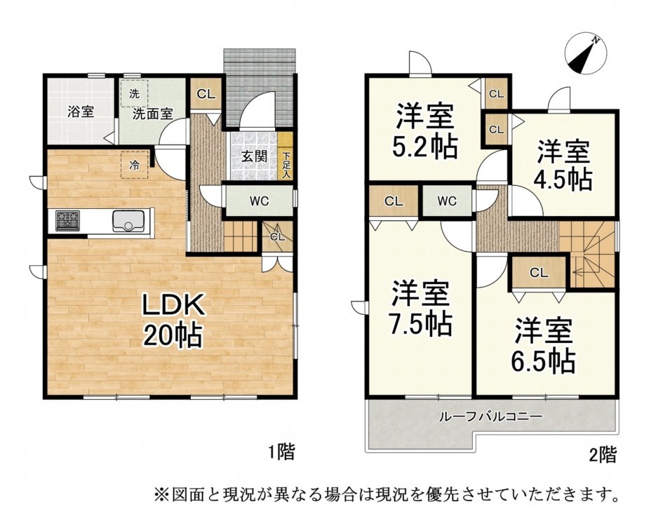 - システムキッチン、カウンターキッチン、ルーフバルコニー、駐車場2台分、床下収納、トイレ2箇所、ハイブリッド給湯器 24時間換気システム